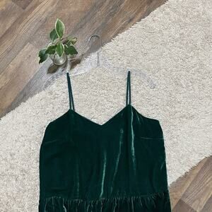 J.crew Size 10 Green Velvet V Neck Ruffle Hem Silk Blend Cami Tank