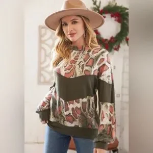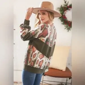"The Kavi" Olive Snake Skin Chevron Top