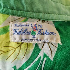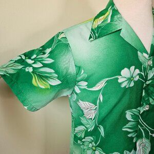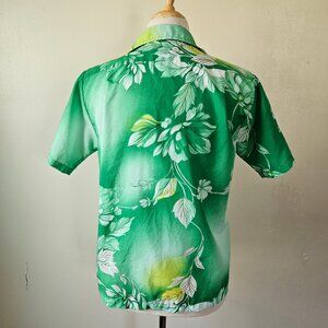 Vintage 70s Hawaiian Polyester Tropical Beach Summer Button Front Shirt Green S