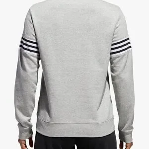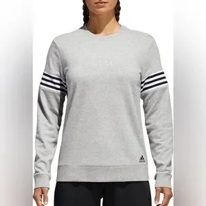 Stay comfortable and stylish with the Adidas Women's Gray Sweatshirt. Featuring a classic design with black and white striped accents, this top is perfect for casual outings.