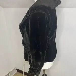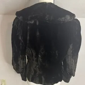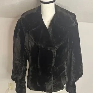 Elegant Vintage Black Faux Fur Short Stylish Jacket Big Button
