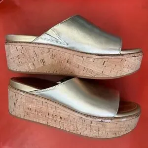 EUC Fitflop gold platform sandals. Size 9. Platform measures about 1 inch in front and just under two inches in the back. Super comfortable and versatile. See pics for gentle signs of wear.