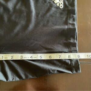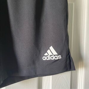 These Adidas black athletic shorts are crafted for optimal performance with a lightweight, breathable material and a relaxed fit, making them ideal for workouts or casual wear.