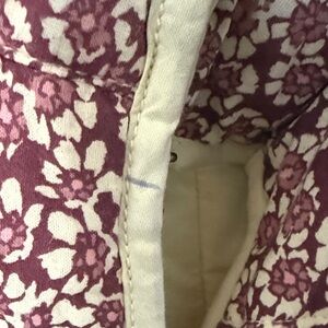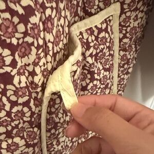 Chic teddy jacket by Free People. Burgundy floral pattern with cream accents. Cozy and stylish for any occasion.