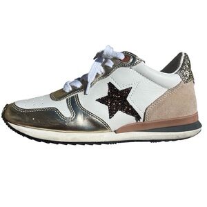 Chic sneakers with metallic accents. Features white laces and gold details. Glitter accents EUC some minor dirt marks on soles. 7.5