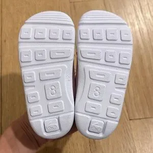 Adorable pink sneakers with purple details. Perfect for active kids.