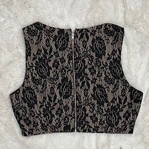Forever 21 Women's Size Medium Floral Lace Zip Up Top Sleeveless in Black/Tan. Like new no holes, tears or stains, smoke free. Bundle with other items and save.