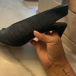 Blue jean peep toe heels. Sleek design with a stylish cutout. Fashionable and classy, match with cream or black pants to elevate any outfit. Like new!!