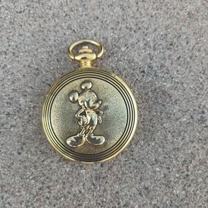 Elegant yet fun gold pocket watch featuring a classic Mickey Mouse design.