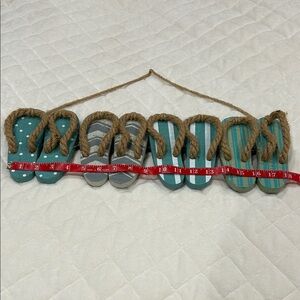 Charming wall decor featuring flip flops in teal and gray tones. Perfect for adding a beachy vibe to any room. Bundle and save!