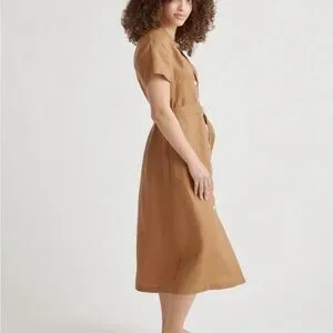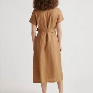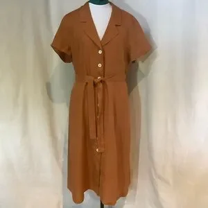 Discover timeless elegance with this brown button-down linen dress. Perfect for any occasion, this dress features a flattering tie waist and classic short sleeves.