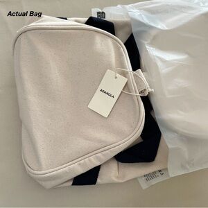 NWT: ADANOLA CONTRAST CANVAS DUFFLE BAG IN CREME/NAVY (O/S)