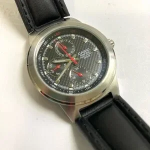 Casio edifice watch, black & silver dial, red accents, working battery, EF308