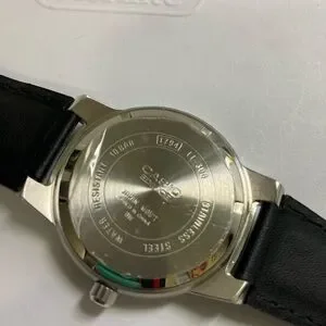 Used Casio watch. Carbon fiber style pattern on dial. Stainless case. Case back still has protective film on it. Strap in really nice condition. Some scratches on watch. See photo for condition. From smoke free home.