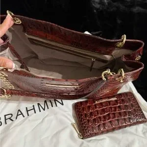 Luxurious Brahmin shoulder bag set. Rich brown crocodile embossing. Elegant and stylish design.