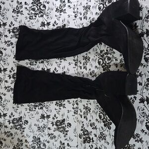 Step out in style with these elegant black knee-high boots. Perfect for any occasion, these boots offer both comfort and sophistication. boot has scuffs imperfections on heel, see pictures, and video size 11 long boot with side ankle zippers see pictures