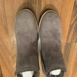 Elevate your wardrobe with these elegant gray suede ankle booties. Designed for style and comfort, they are perfect for any occasion.