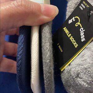 Comfortable ankle socks by Cat & Jack and Art Class. Features pink, navy, and gray designs. Perfect for everyday wear. Three packages 7 pairs.