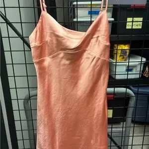 Chic and stylish mini dress. Shimmering peach fabric. Perfect for parties or nights out.