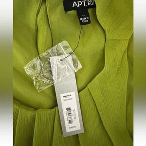 NWT Apt. 9 Womens Pleated Neck Sleeveless Green top Blouse Lined Shirt Sz L