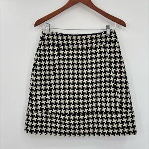 Club Monaco Skirt Womens Size 2 White Black Houndstooth Wool Blend