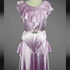 1930s Lavender Bias Cut Satin Gown