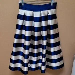 Elegant navy blue and gold striped skirt perfect for any occasion. Add a touch of sophistication to your wardrobe.
