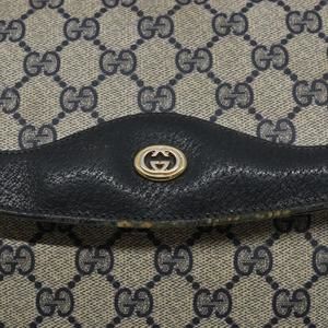 GUCCI GG Supreme Clutch Bag PVC Navy Gold 156 02 075 Auth sw1174
