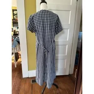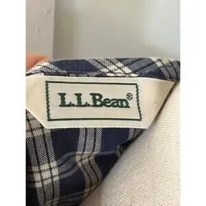 vintage L.L. Bean 100% Cotton Blue Plaid Button Front Cottagecore Dress Petite