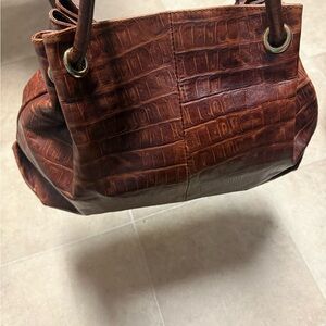 Vintage Y2K Furla Brown Croc-Embossed Genuine Leather Tote Bag