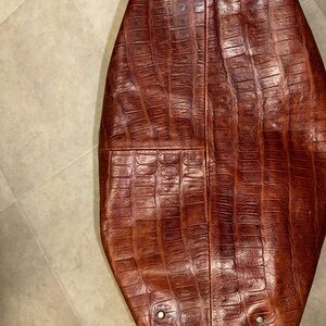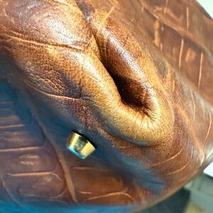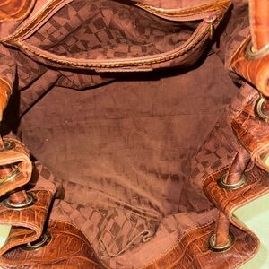 Pre owned Vintage G - VGUC -This stunning Furla tote is crafted from rich, croc-embossed genuine leather in a deep chestnut brown tone. With luxurious texture and gold-tone hardware, this bag blends timeless Italian craftsmanship with everyday functionality. The spacious interior features signature Furla logo lining, an interior zip pocket, slip pockets, and a magnetic snap closure.