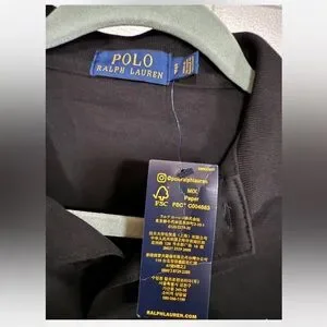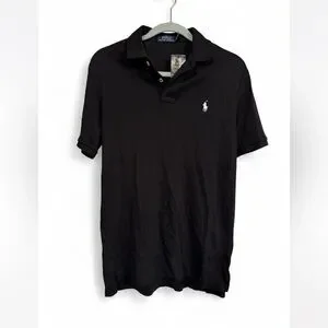Timeless black polo by Ralph Lauren. Features iconic logo. Perfect for versatile styling.