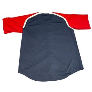 This men's 2XL button-up jersey by Dynasty features the Cleveland Indians in a multi-color design. It is officially licensed by Major League Baseball and made in the United States. Suitable for game days, sports events, or casual outings. The jersey is pre-owned. Keywords: Cleveland Indians, MLB, baseball jersey, men's jersey, 2XL, multi-color, Dynasty, officially licensed, sports apparel, Cleveland, button-up jersey, pre-owned, United States, baseball fan gear.