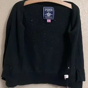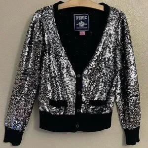 Victoria’s Secret PINK Black Cardigan Sequin Bling Button Up - Small