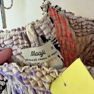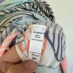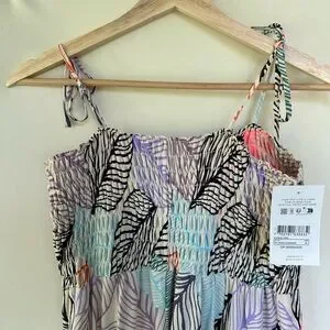 Maaji Maxi Dress – Sunset Palm Fronds Ruched Tie Strap Beach Size M