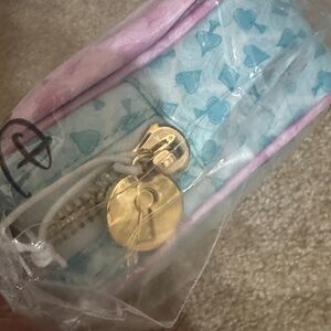 Adorable pouch featuring a charming pink bow on a blue background. Perfect for kids to store their small accessories in style from the Alice in Wonderland collection