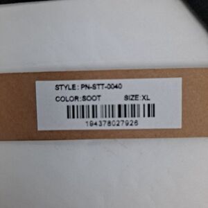 The color is soot, size xl. Comfortable fabric is 94% cotton, 6% elastane . Pretty ribbed knit, lined crotch.