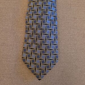 Thomas Pink London 100% Silk Tie – Blue & Gold Geometric Pattern