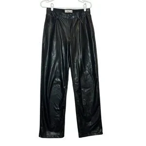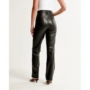 Abercrombie & Fitch Women 28/6 Curve Love Vegan Leather 90s Straight Pant Black