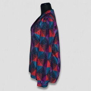 Vintage 80s 90s Blouse Geometric Print Multicolor Size Medium