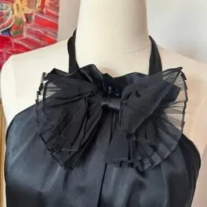 betsey johnson black silk bow tie turtleneck tank top, size 2