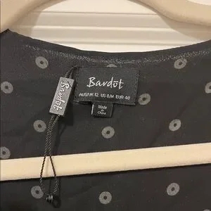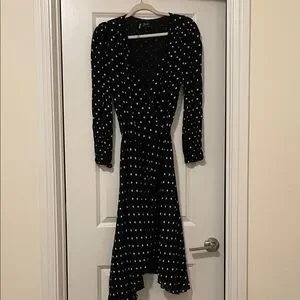 NWOT! Bardot Black Long Sleeve Polka Dot Dress, Size Medium
