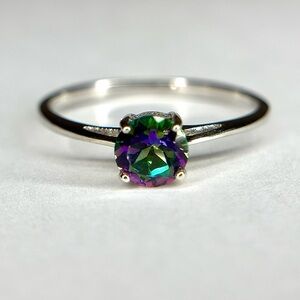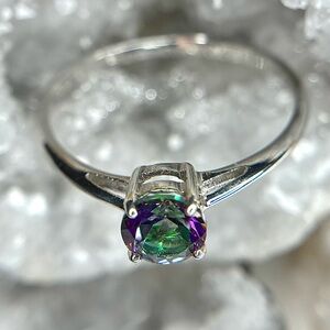 A solitaire Mystic Topaz is all you need to keep your sadness away! The electric green and pink play so well together that at some points.. you see many more colors! This size 10 is a small taste of the electric rainbow!!! ✨💚🩷💜💙✨