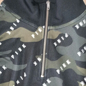 Vs Victorias Secret Pink Quarter Zip Track Jacket Sweater Top Camo L
