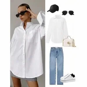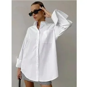 White Loose Fitting Dress Shirt Button Down, Long Sleeve