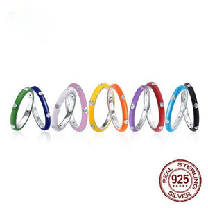 NEW Unisex White Enamel Pave Diamond Sterling Silver Band Ring Size 10