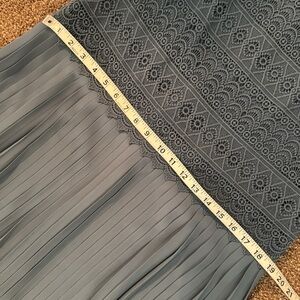 Muted medium blue Loft drop waist dress with lace bodice and pleated chiffon skirt. Sleeveless and fully lined with full zipper and hook and eye in back. NWT. Beautifully constructed garment. See photos for measurements and fabric details.