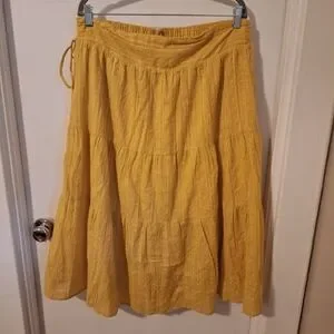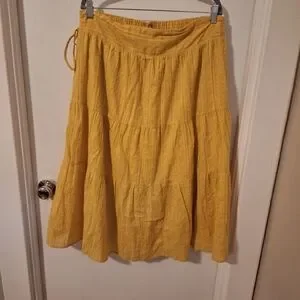 Lost + Wander: Yellow Boho Tiered Cotton Skirt, Elastic Waist Zip Close. Size 2x