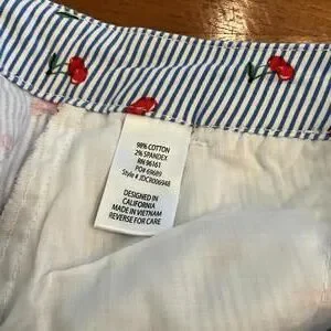 NWOT BeBop Blue stripe shorts with cherries, sz 11. 3" inseam, 11" rise. See photos for measurements. Smoke/pet free Fast Shipping Check out my other items!