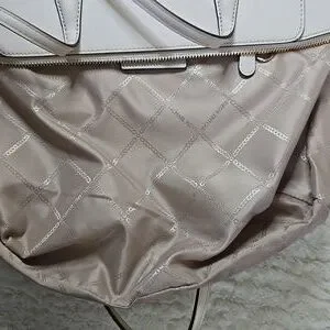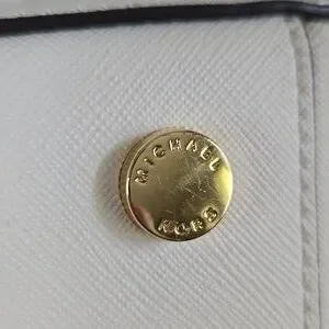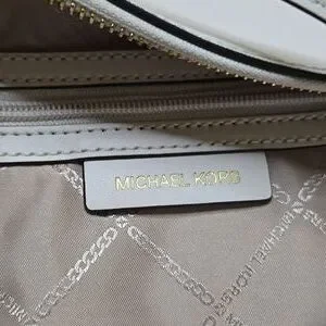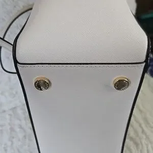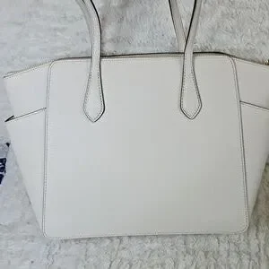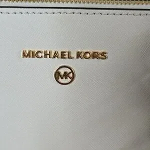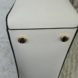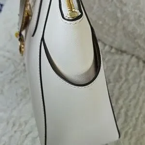 Chic Michael Kors tote in white. Features a playful charm. Stylish and spacious for daily use.